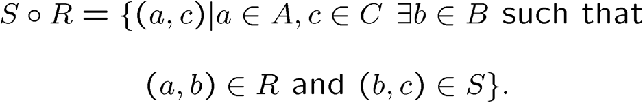 复合关系的定义:设 \(R\) 是从集合 \(A\) 到 \(B\) 的关系, \(S\) 是从集合 \(B\) 到 \(C\) 的关系,则 \(R\) 和 \(S\) 的复合关系(Composite)定义为: