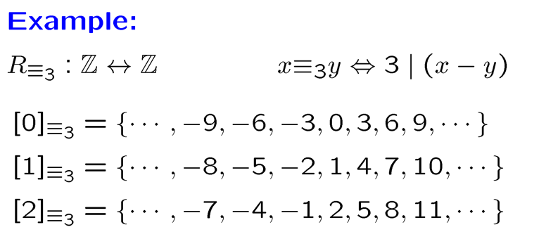 - 如果 \(A\) 有 \(n\) 个元素,且每个等价类 \([a]_R\) 包含 \(m\) 个元素,则 \(m|n\),且 \(A/R\) 包含 \(n/m\) 个元素