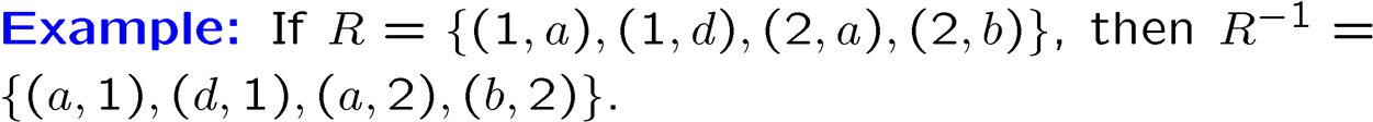 \(R^{-1}=\set{(y,x)|(x,y)\in R}\)