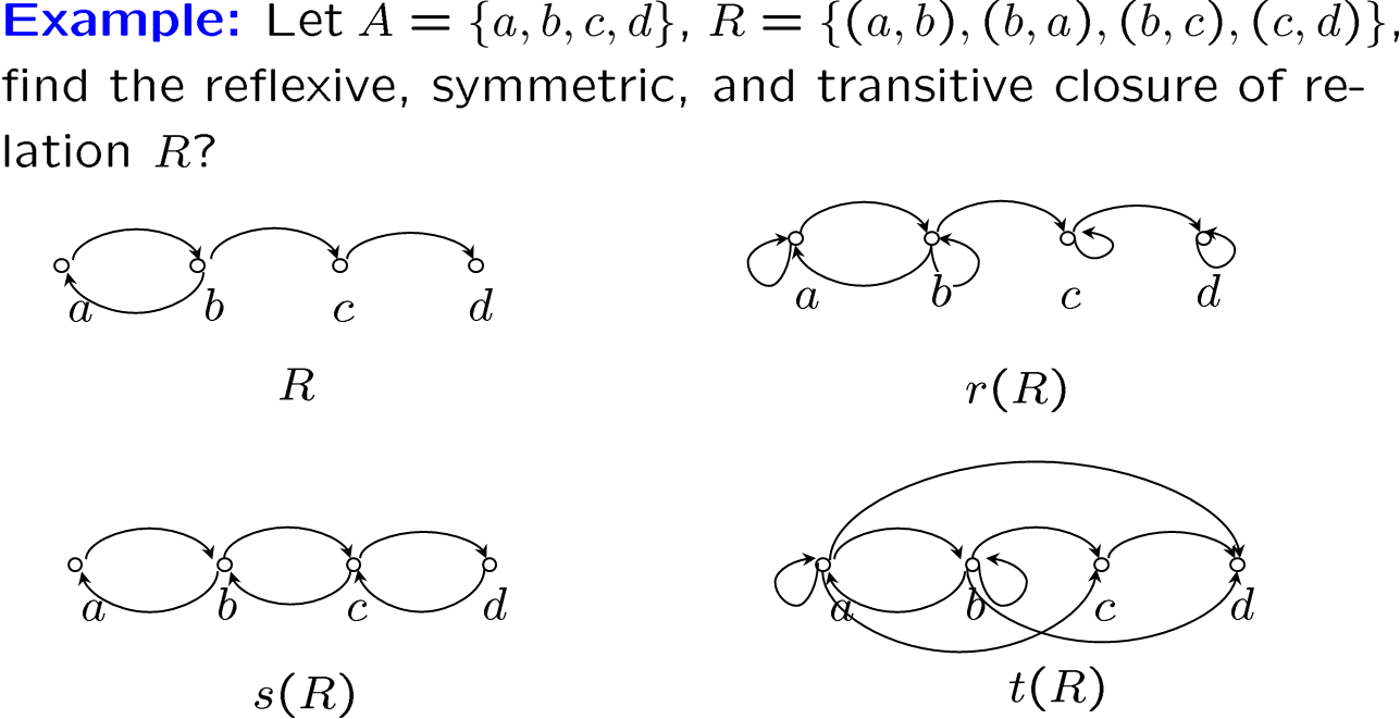 - \(R\) 是自反的 \(\Leftrightarrow R_=\subseteq R\)