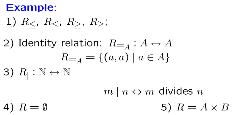 二元关系的数量:具有 n 个元素的集合上共存在 \(2^{n^2}\) 个二元关系